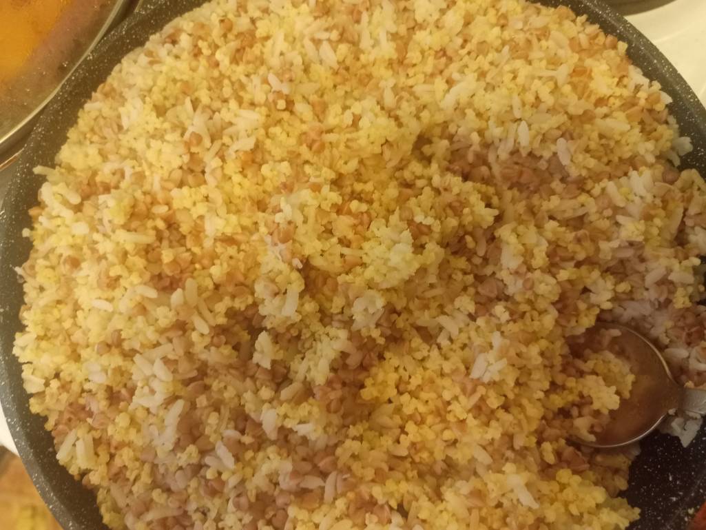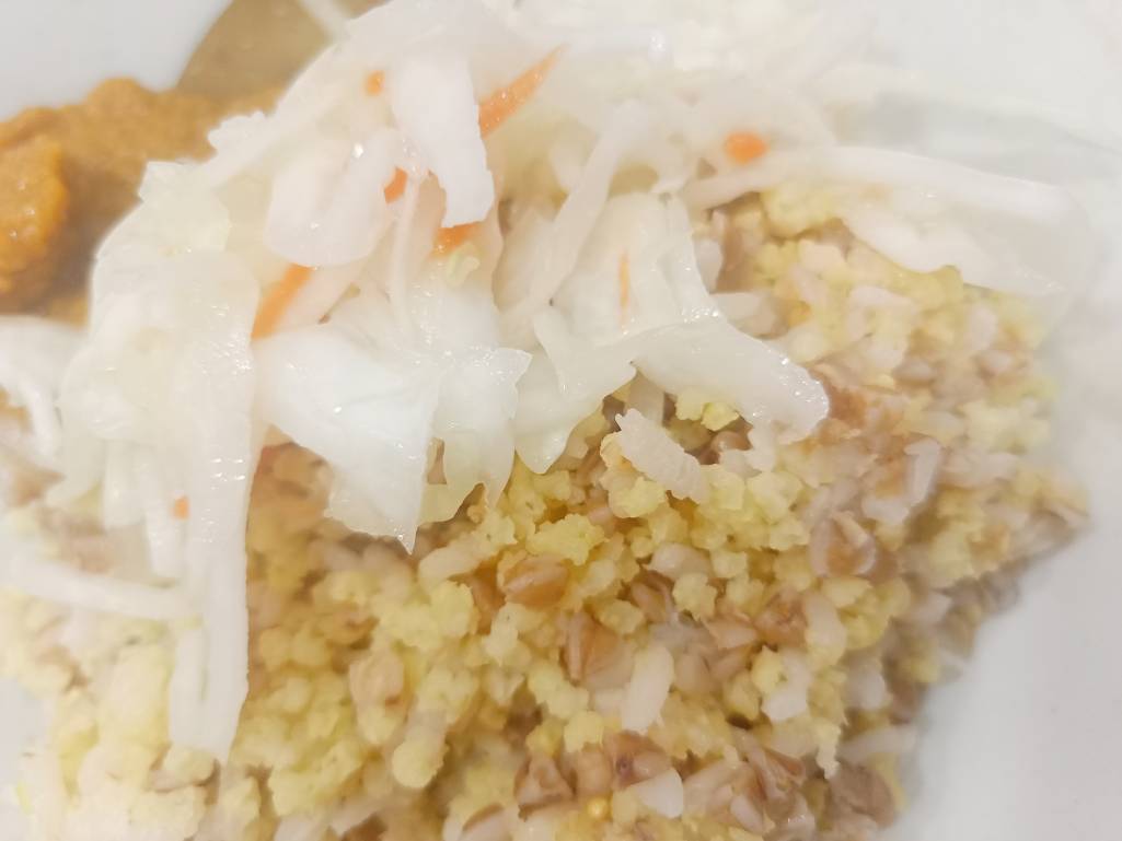 Сегодня у меня каша "Дружба" с квашеной капустой и икрой заморской