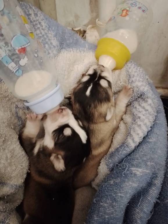 в другой теме писала, пришла вдруг собака, оставили у себя. Она оказалась беременная, весь помет передавила, двоих успели отобрать. Кормим, массируем пузики, вытираем. Уже глазки открывать начали