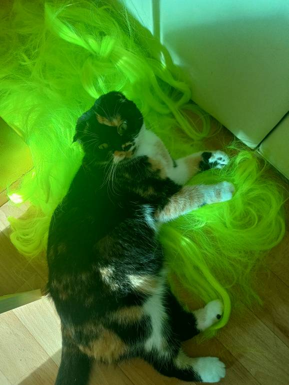 Кстати, у Плюши на самом деле синие глазки, просто зрачок большой. Но когда она вытягивается или просто поворачивает вбок голову, видно, что радужка синяя