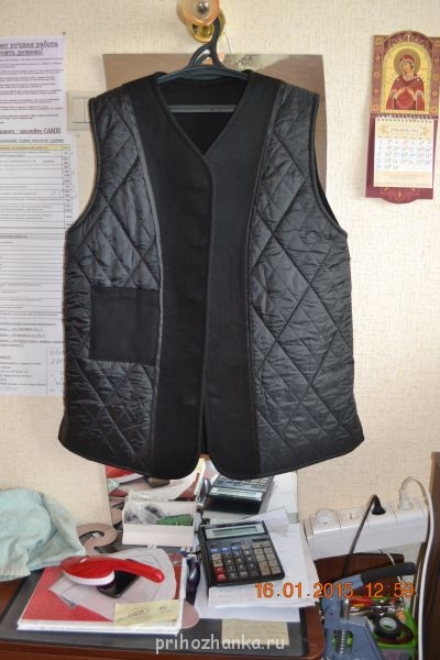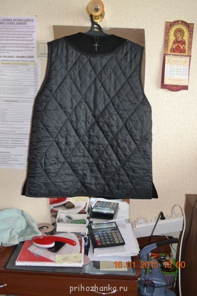 Мои первые работы. Зимняя скуфья и жилетка. Дополнительно подкладку сажала на утеплитель мейда. Выкройки снимала с готовых изделий. Хотя в наличии имею книгу "Пошив церковных облачений, монашеской одежды и изготовление изделий для убранства храма", но пока ею не воспользовалась.
