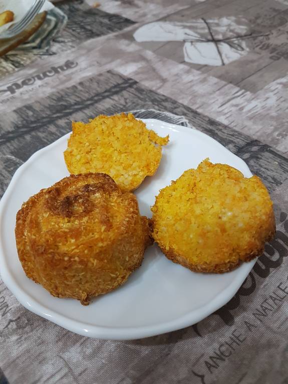 Морковно-пшенная запеканка, но я делала в форме кексов. Вареное пшено, тертая морковь, кокосовоя стружка, манная крупа.