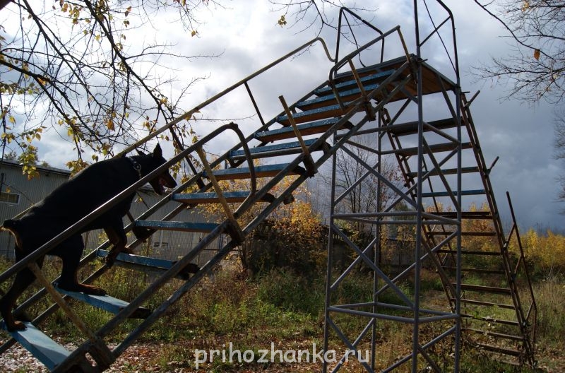 самый сложный для нас снаряд по окд был лестница.По ней он должен был пройти сам по команде без меня.