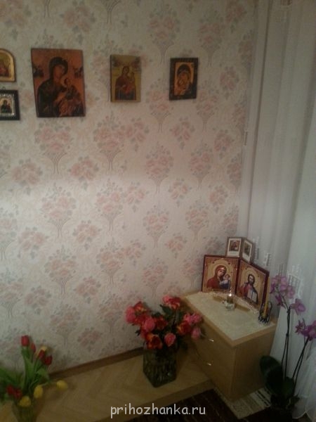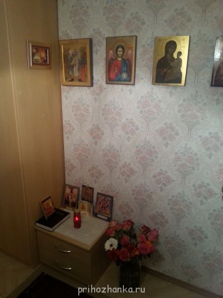 Покажу и я свой уголок. Я для него выделила полку книжную, надеюсь и верю что муж мне все-таки сделает иконостас обещанный.