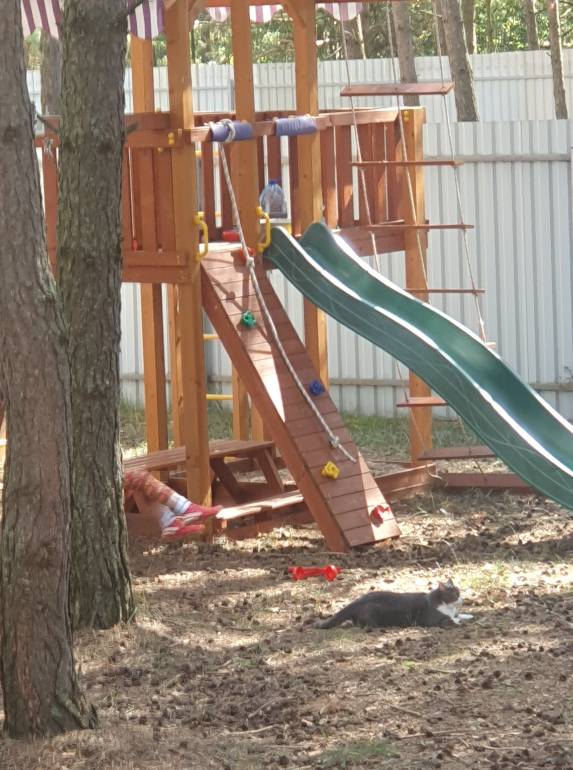 Мы сейчас на даче, ходят на улицу гулять. Лоток так, на всякий случай. Хорошо им на природе.