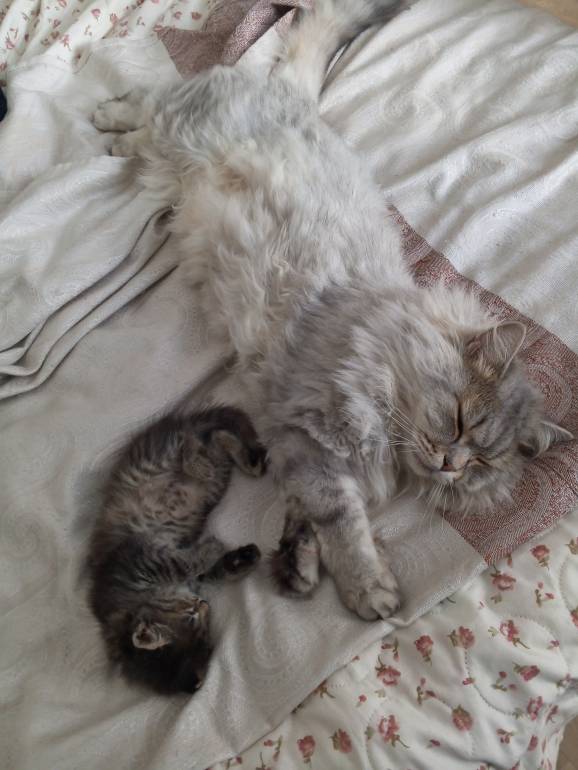 Вера,та что мелкая, мышиного цвета.Серый и большой-это Кузька.