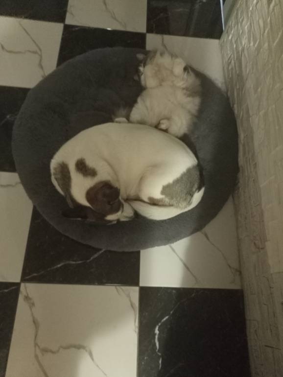 У меня - две собачки- девочки,5 котиков- всех пришлось кастрировать,водяная черепаха( купили совсем маленькую,когда сын травмировался и сидел год без вылазно в комнате,тогда же я взяла ему тритонов и рыбок). А собачек и кошек насобирал за 10 лет проживания в городе![Изображение]()