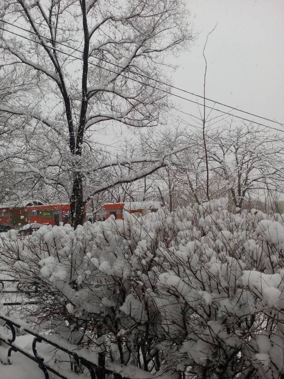 У нас второй день снег идёт и - 10 температура на улице. Так красиво, всё в снегу