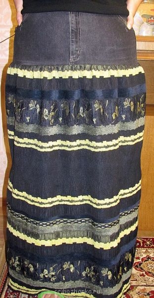 С построением выкройки-да! А без выкройки перед этим были тока две юбки в пол.Первой фотки нет пока (она идет тремя ярусами),а вторую шила ,используя старые джинсы.Акка Кнебекайзе:Линда, первый раз