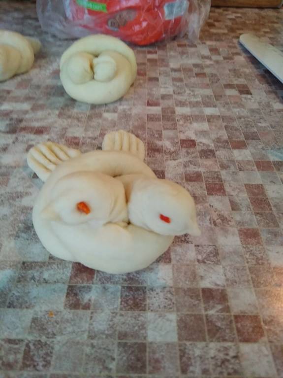 Девочки, я делала пряничное тесто и в саду детям показывала как сделать птичек. Получила массу удовольствия. Оказалось, что 17 детей - это проще, чем свои 4ро)))). Фото птичек перед выпечкой нет ( только вместе с нами), а на кухне их немного зарумянили.. Вот- не судите строго - лепили трехлетки