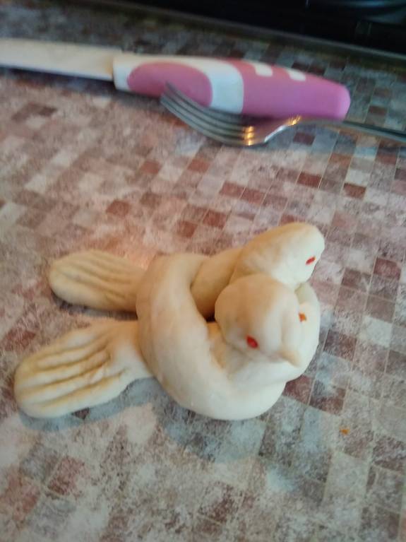 . Колобок, колбаска, вторая, приплюснули, краешек подняли, закруглили - голова, ..)))