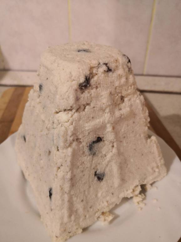 Вот моя пасочка. Плохо утрамбовала в марлю