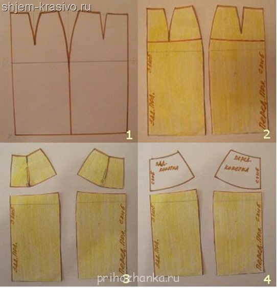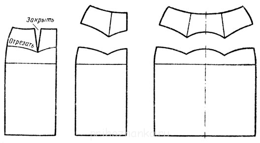 Снова берем нашу выкройку. Отрезаем кокетку, закрываем вытачки