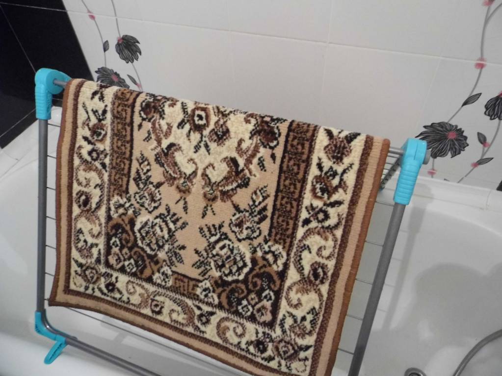 Я вот коврик , на котором спит собака постирала... Висит себе над ванной, вся вода туда, в ванную, стекает . Сушка складывается и убирается.