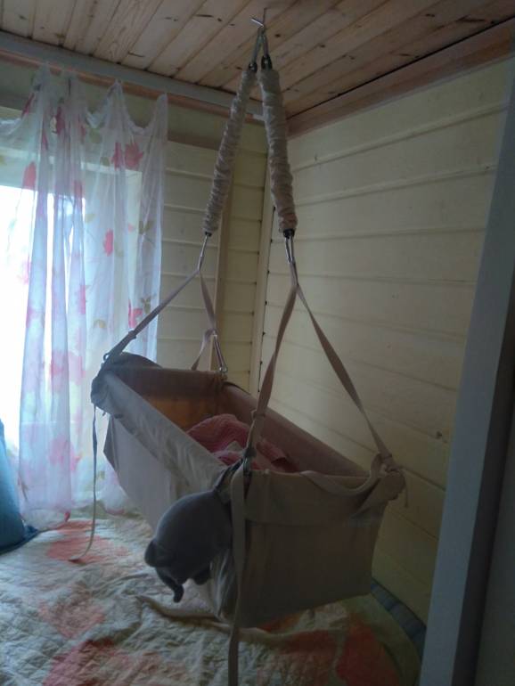 Понравилась люлька подвесная, на даче используем, в квартире тоже можно. Качается сама долго, мало места занимает).