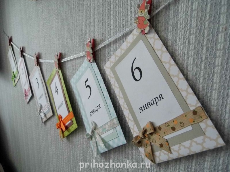 ага... У нас календарь с 1 по 6 января. Просто Новый год такой разрекламированный праздник, дети его ждут , а вот Рождество (несомненно, более значимый праздник) как-то особо не анонсируется в СМИ. И получается, ожидания такого трепетного нет. Так вот , чтобы праздничную атмосферу поддержать я сделала такой календарь. И еще дети видят, сколько дней осталось до Великого Дня.Дуняша:, Оль, не поняла, вы каждый день подарки ищете?
