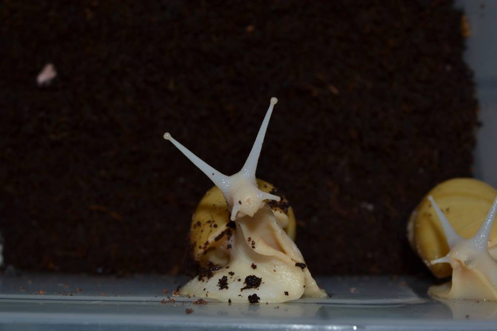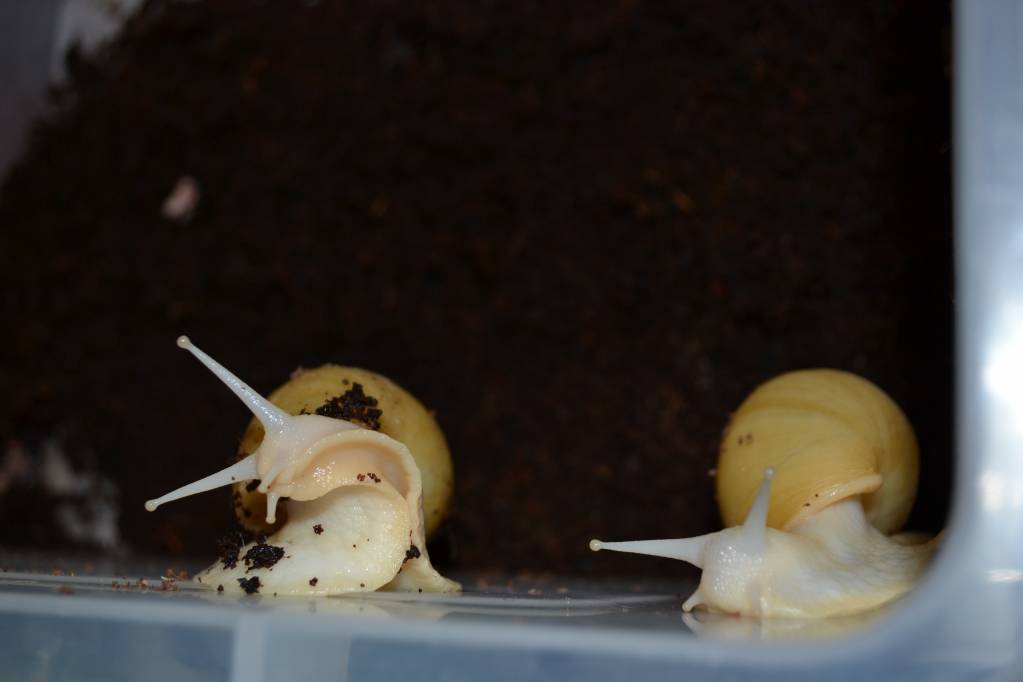 Желтенькая это Ахатина Фулика Родация Альбино и есть ещё Фулика альбино "Белый нефрит" у неё темно коричневая ракушка и тоже альбинос. На фото Альбино и простая Фулика , нифритики спят