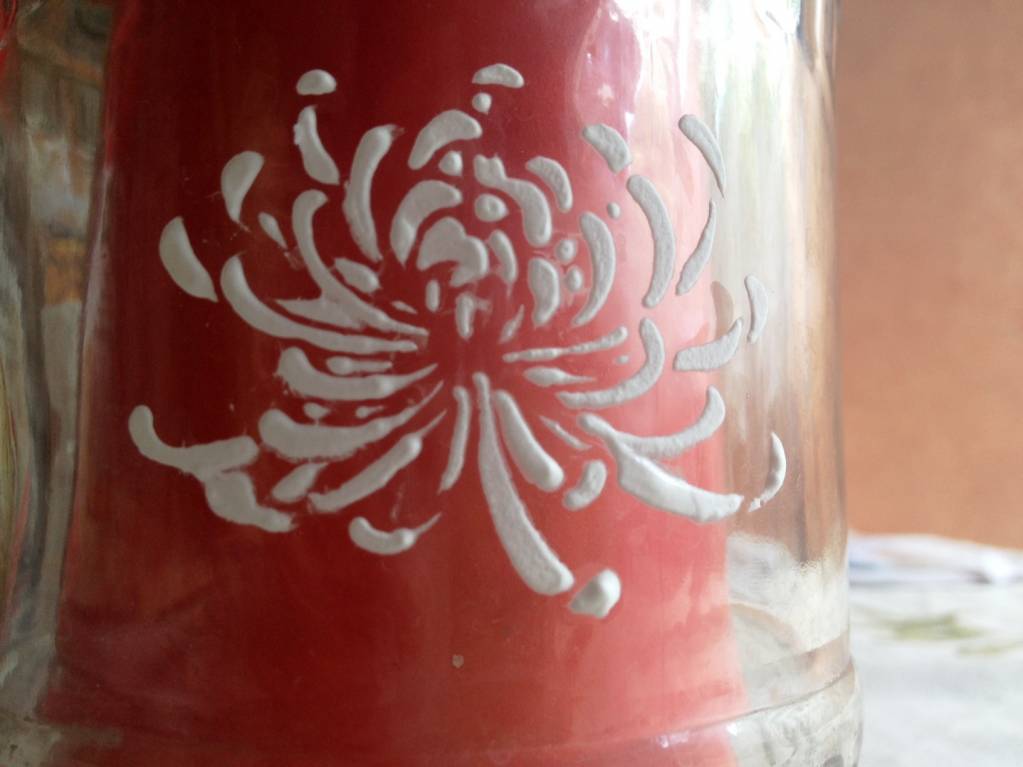 Вот, смотри -- видишь рисунок не аккуратный? Это я делала шпатлевкой. Она была старая, загустела и я разбавила водой, что бы получить нужную консистенцию. И то, она не достаточно получилась густая, много воды... надо еще размешивать. Свежая шпатлевка более густая, как очень жирная сметана.