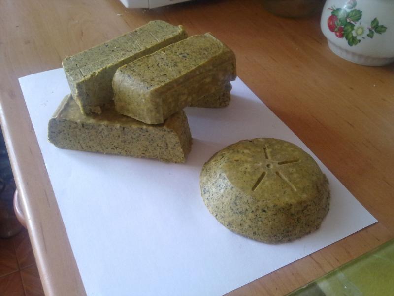 Я тоже натёрла мыло. Как раз с лета остались листы малины и иссоп, их перемолола. Теперь завтра куплю оливковое масло, а из эфирных масел у нас пихтовое есть