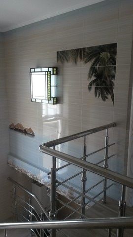 А тогда всё в дефиците было. Обои не достать. Пришлось лепить из подручных средств красоту и практичность. Низ и часть стены в прихожей муж тарными дощечками ковровым узором сделал(раскладывал дощечки квадратами, выжигал по трафарету узор, потом колеровал морилками и покрывал лаком), верх я расписала под модные тогда фотообои в виде распахнутого окна с цветущей яблоней и птичками за окном, сделали подсветку, фальшь подоконник служил полочкой для всяких мелочей, плюс два намертво закреплённых зеркала почти во всю высоту на дверях ванны и туалета добавили перспективу и сделали маленький узкий коридор визуально больше, шире, выше и светлее. В комнате из-за тесноты обои все заставлены были мебелью, так что не дрались они. Кусочек свободной стены был только рядом с входом в кухню. На нём(этом кусочке стены) кнопками крепились листы ватмана и официально позволялось детям рисовать