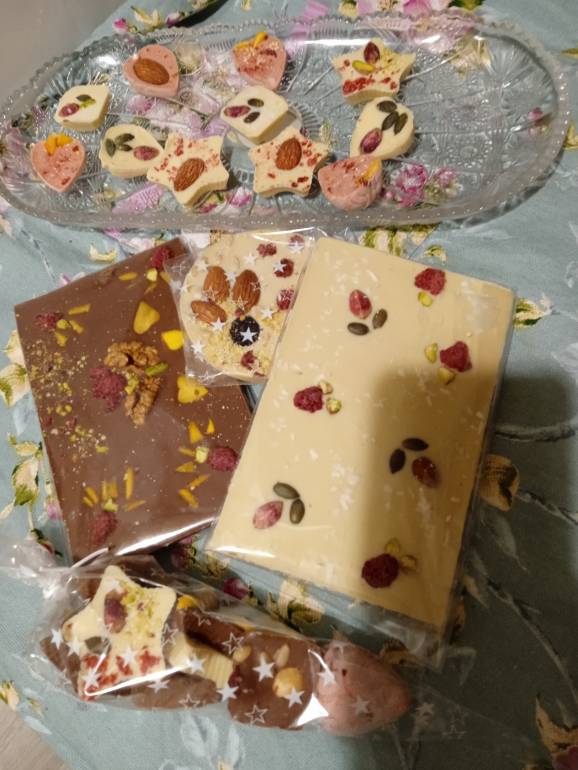 Мы с Амелией перед новым годом делали конфеты и шоколадные плитки.