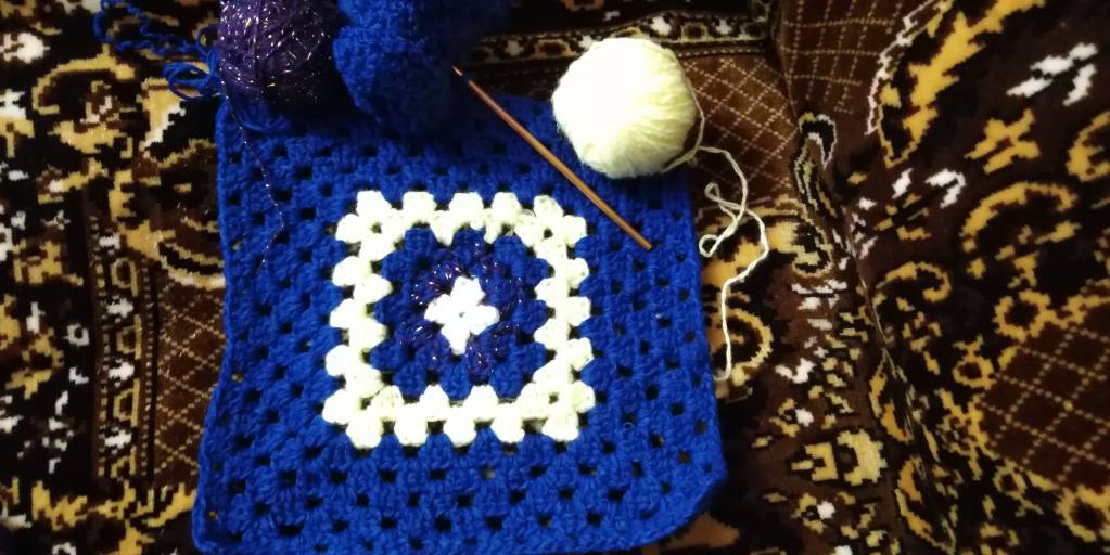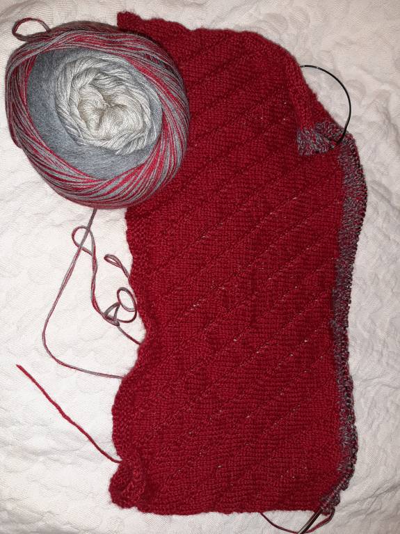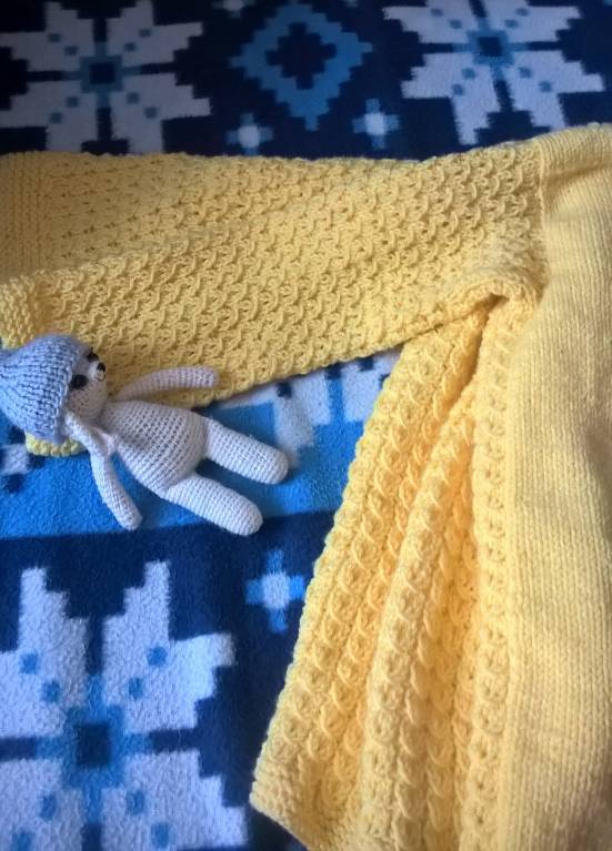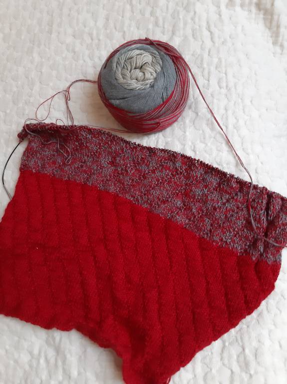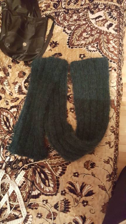 За всю неделю одолела только 12 рядов, фото прилагать не буду, оно практически такое же, как в прошлый раз. На следующей неделе, если смогу, хочу сантиметров 15 провязать. Если опять не разболеюсь.