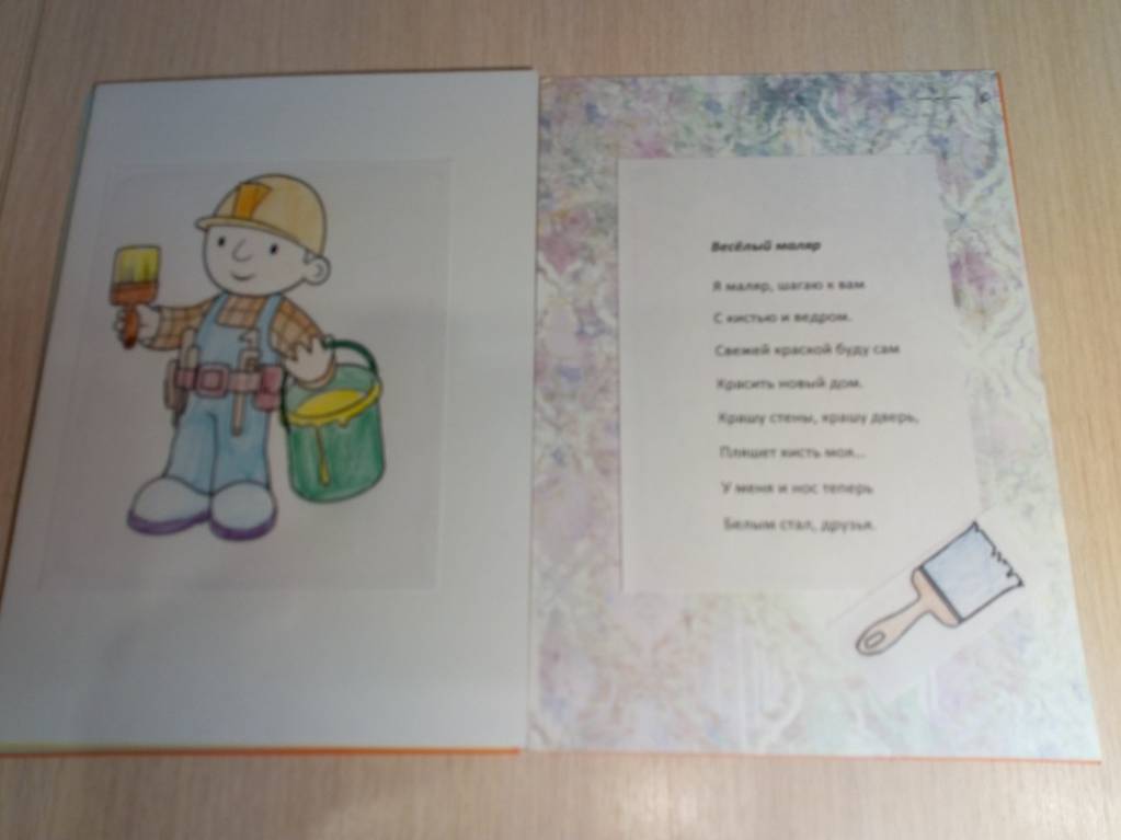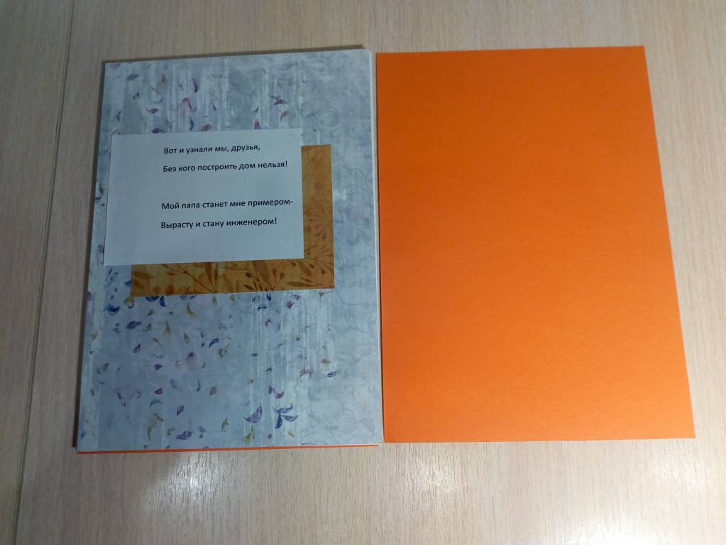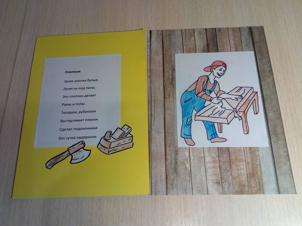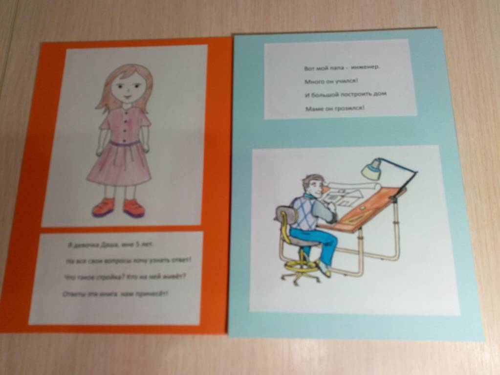 Заданная тема " Инженером стать хочу" , "Рабочие профессии". Обязательно участие ребенка в процессе. Времени было очень мало дано,вот что получилось. Правда,уже скреплённую саму книгу не сфотографировала. Ну отдадут когда,потом покажу .
