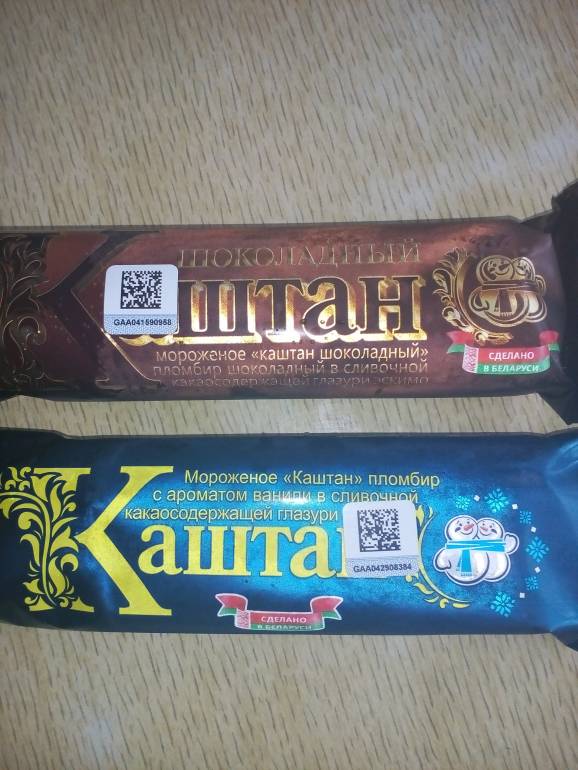 Вчера увидела в магазине ларь с белорусским мороженым. Там и Каштан есть. Впервые взяла на пробу