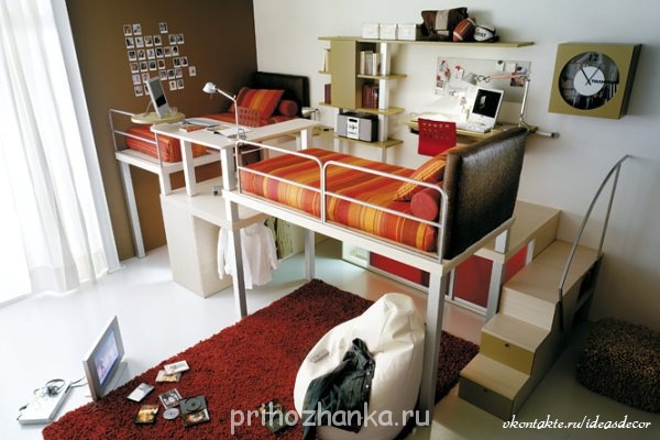 Мои мальчишки уже три года спят на двухъярусной кровати (когда купили - старшему было 12 лет, а младшему 1,5 года). Кровать без лестницы. Мы рядом поставил шведскую стенку (мини спорт-комплекс), вот старший по ней забирается, заодно и на турнике висит-подтягиваетсяТатиана:В наших планах: двухярусная кровать, шкаф, возможно комод, шведская стенка, в дальнеёшем - письменный стол