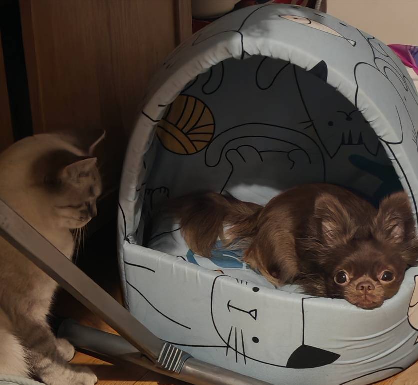 Отправлено спустя 3 минуты 27 секунд: Это смешное из нашей жизни. Купила кошке домик, но собака решила, что он ей больше подходит