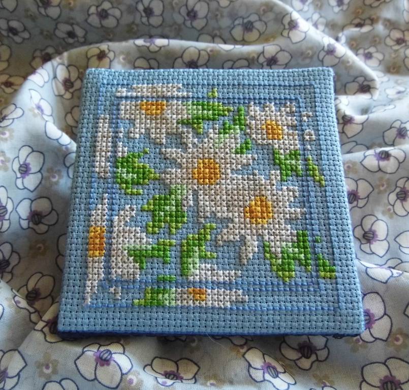 Акка Кнебекайзе, Оля, ромашки на голубой канве классно смотрятся.