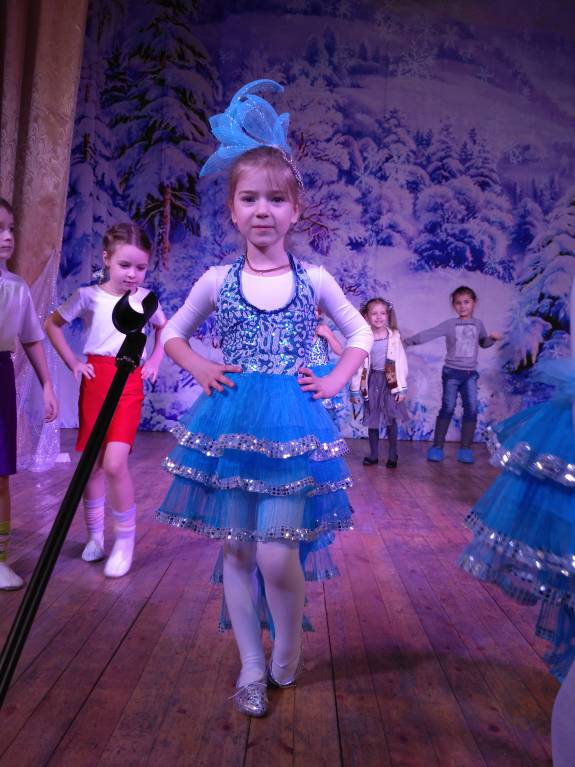 Выступили сегодня на елке. Два танца готовили в нашей группе: в костюмах снежинок (народный) и рыбок (что-то с элементами польки). Конечно, ещё учиться и учиться. Один бы танец отработали, а то сразу два, да не за полных 4 месяца..