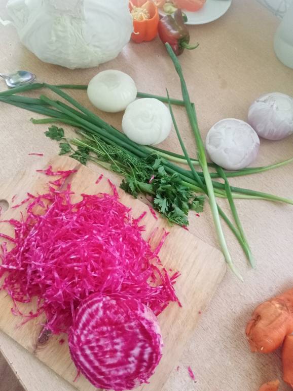 Мы из деревни. Тушеная капуста, помидоры- огурцы, ягоды ещё можно найти- чёрная смородина, земляника.