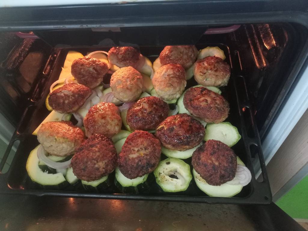 А к обеду макароны+котлетки с кабачками и на кабачках
