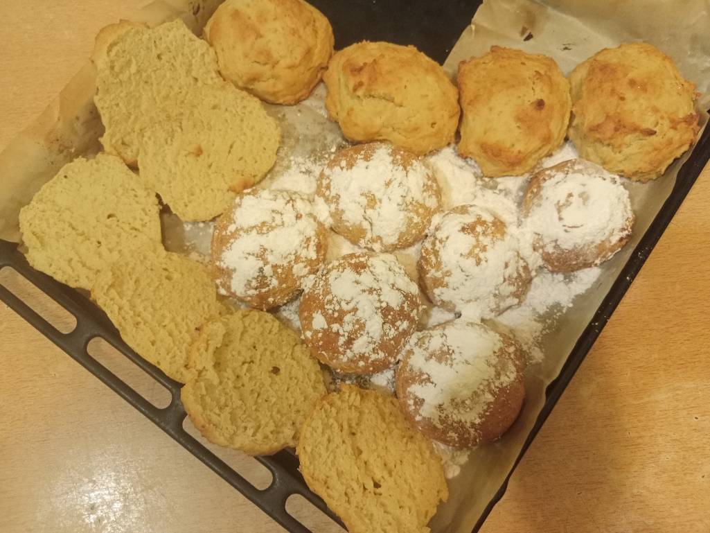 В пудре- это с маком, а разрезаю, чтобы намазать повидлом