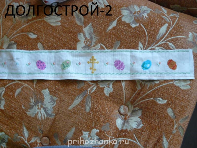 Иля, у меня есть маленькая корзиночка, я туда яички ложу на Пасху. Хочу обернуть её этой полосочкой. Вот она. Цветочки я переместила на ручку. Потом покажу, как получилось