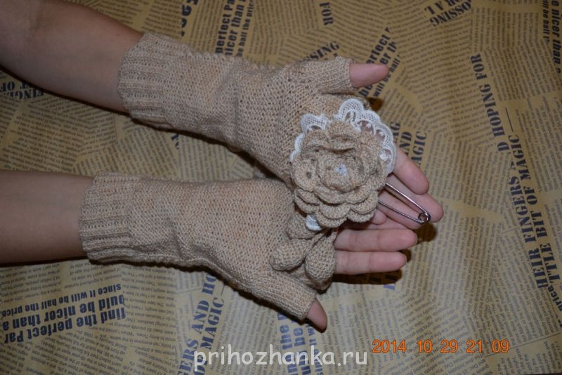 Очередная мелочевочка, митенки и брошка в бохо стиле