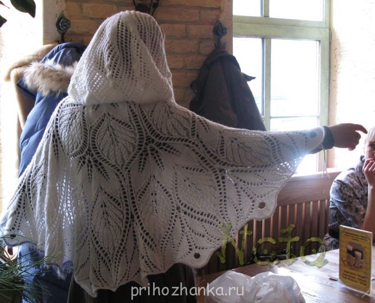Если-бы шаль, то начинали-бы с первого ряда, а для накидки нужен вырез горловины. Поэтому надо рассчитывать - с какого ряда начинать. Широко получится - не страшно. Вставите декоративный шнур-завязку. С кистями, помпонами или бусинами (крупными). Лишь-бы узко не получилось