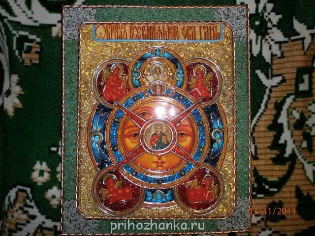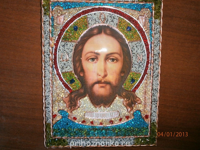 Мы все иконы вышитые раздарили. Осталась только одна, полностью вышитая мужем.