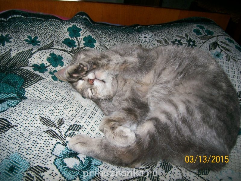 Мотя любит улечься со мной рядом на кровать, а еще лучше непосредственно на меня и звонко так мурлыкать.