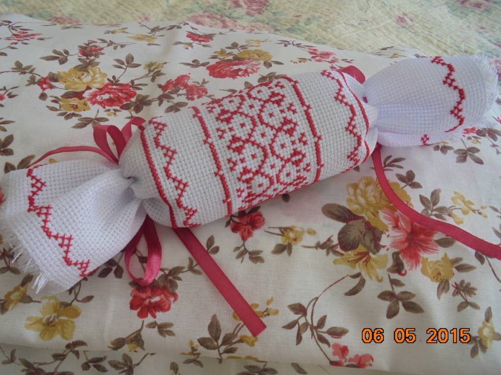Я сначала (во время вышивания) вырезала два одинаковых квадрата ... Потом подумала: "А, собственно, как они крепиться будут?" Угу. Сначала вырезала, а потом подумала .Нормально.