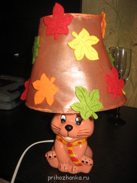 немного обновила светильник,изнутри абажура было что-то вроде пластика,он поломался и осыпался,а ткань тоненькая,боялась загорится.я ткань обработала жидким стеклом,а потом наклеила уже готовые листочки