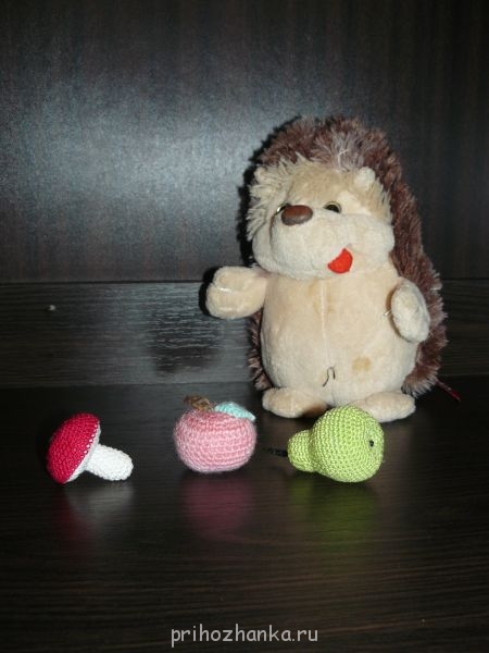 Грибок, яблочко и грушка для нашего ежа. Будет прикреплено сзади на "иголочки"