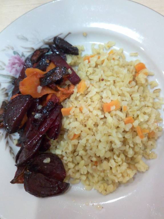 У нас гречка ,опять свеклу с морковью запекла,полюбилось нам со старшей дочкой блюдо такое. А на ужин картошка отварная,капуста квашеная .
