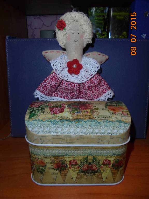 Шкатулка из Леонардо. И ангелочек покупной. Случайно наткнулась на магазин вот таких рукоделок, "Василиса" называется. Вот бы таких научиться шить,в общем-то все просто на первый взгляд..