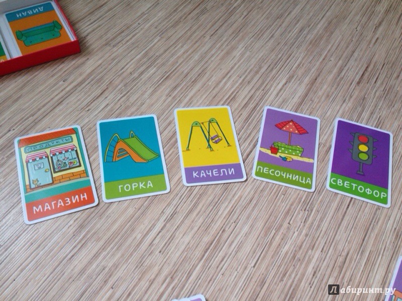 Они яркие, на плотном картоне, двусторонние. Всего в наборе 100 штук. Уже почти все слова выучил и может показать.