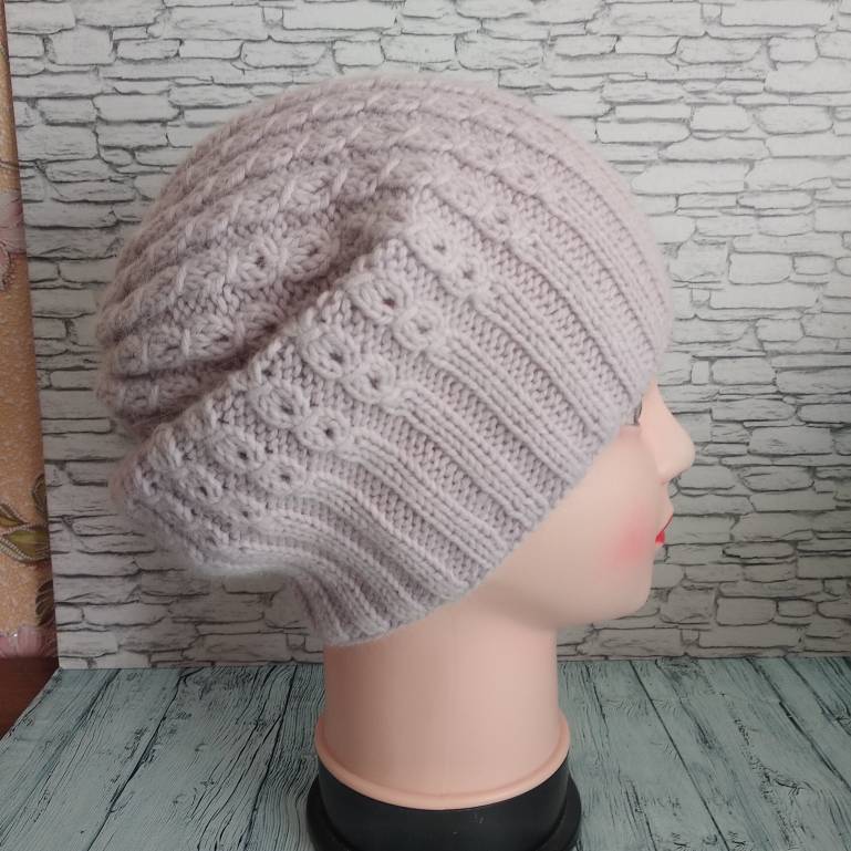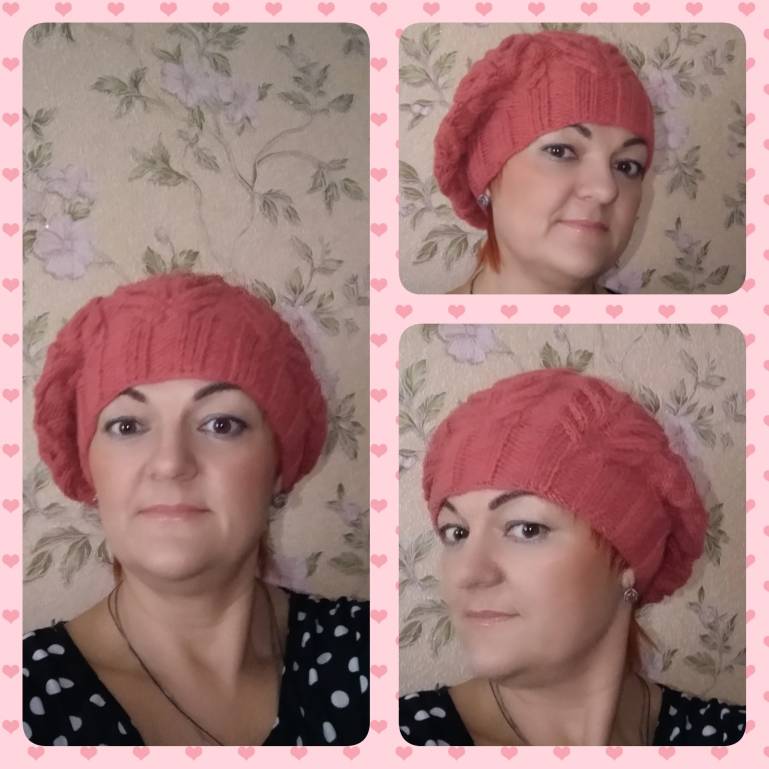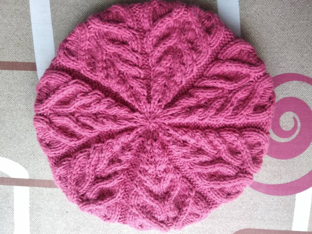 Не удержалась....Довязала берет и показываю))) Пока без ВТО. Но мне очень нравится. Мне идёт? Цвет передался на 100%. (Там где на мне).А вот в раскладке- нет. Но хоть покажу какой узор чудесный.