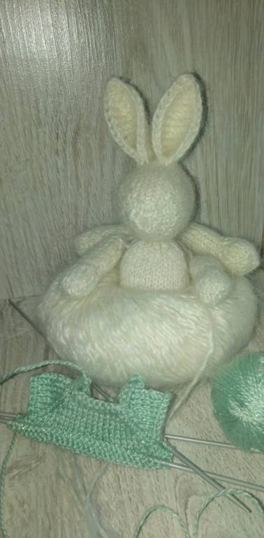 Довязываю наряд.Медвежонок так в платье куколки и отправился с дочерью в сад,моя лень плохо поддается моим усилиям.