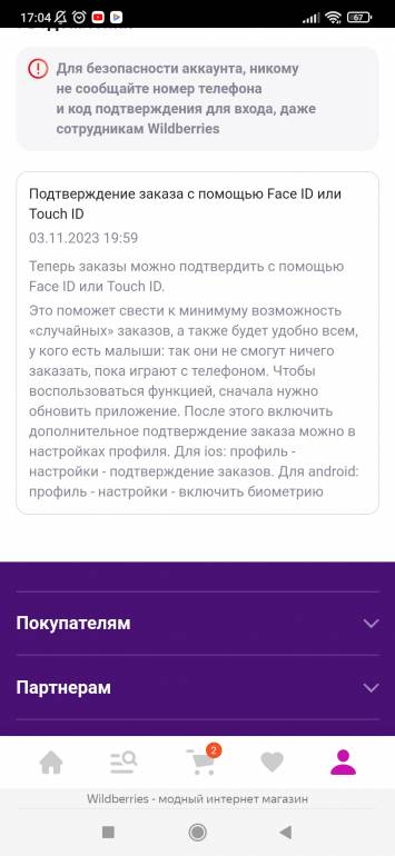 Вайлдберриз прислало уведомление о скачивании обновления чтобы потверждение оплаты было через биометрию.