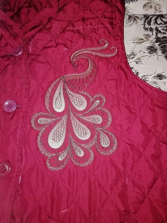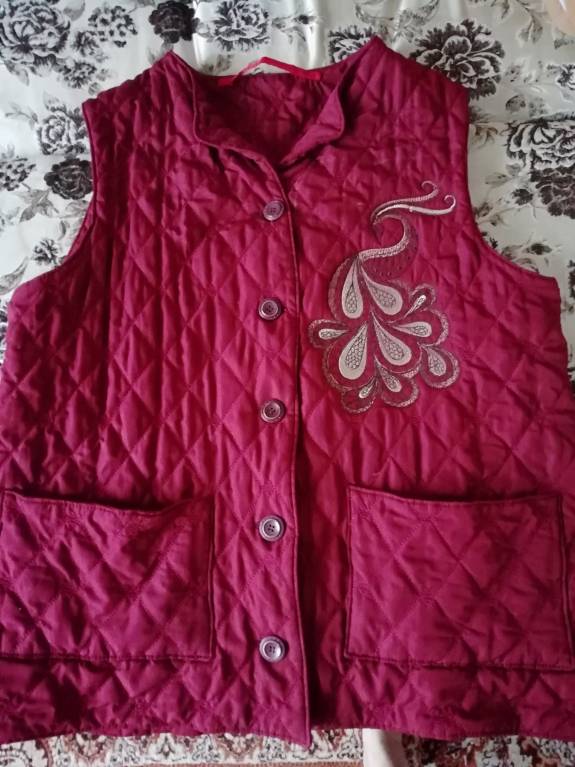 Обновила старую мамину жилетку. Свою я тоже вышила, но там еще небольшой ремонт предстоит, потому попозже покажу.