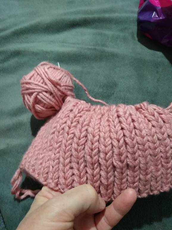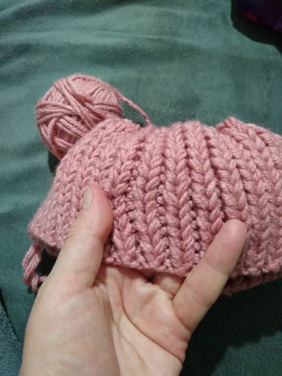 Нашла ещё один моток пряжи - надо свою шапку распустить и в две нити связать. Никогда б не подумала, что может быть холодно в шапке.